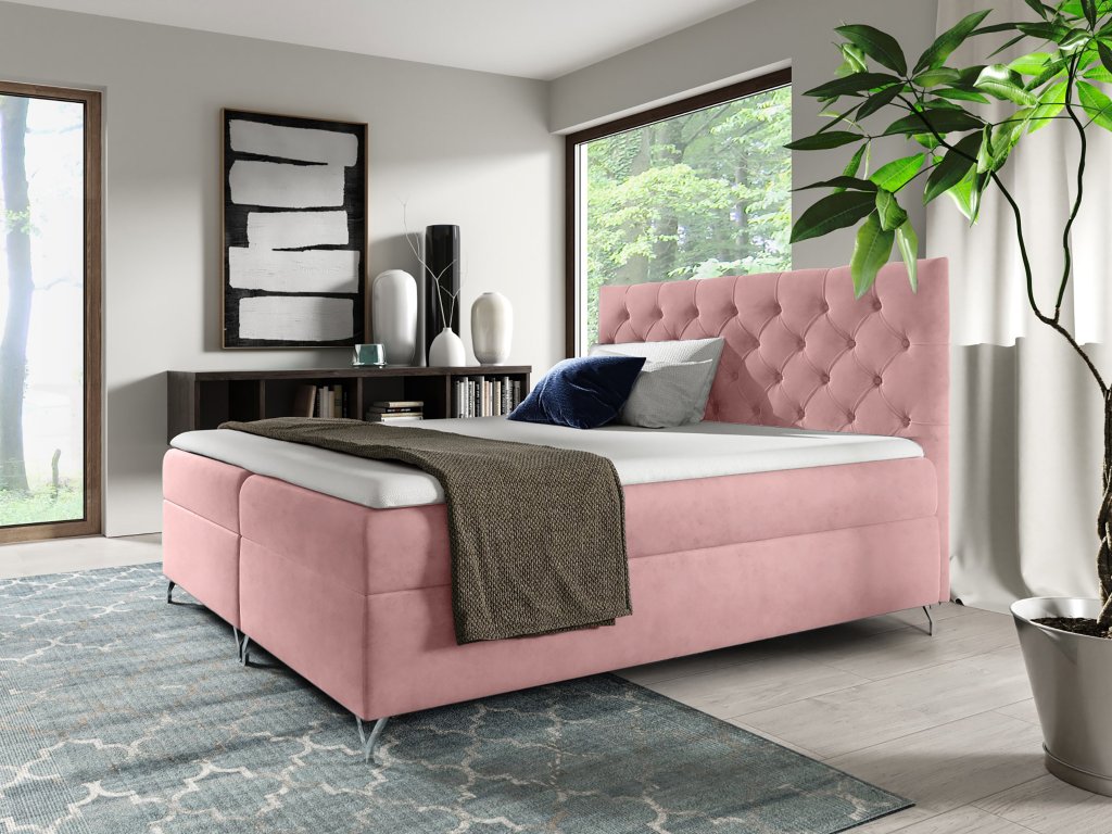 Čalúnená boxspring posteľ Guliette s matracom 120x200 - ružová