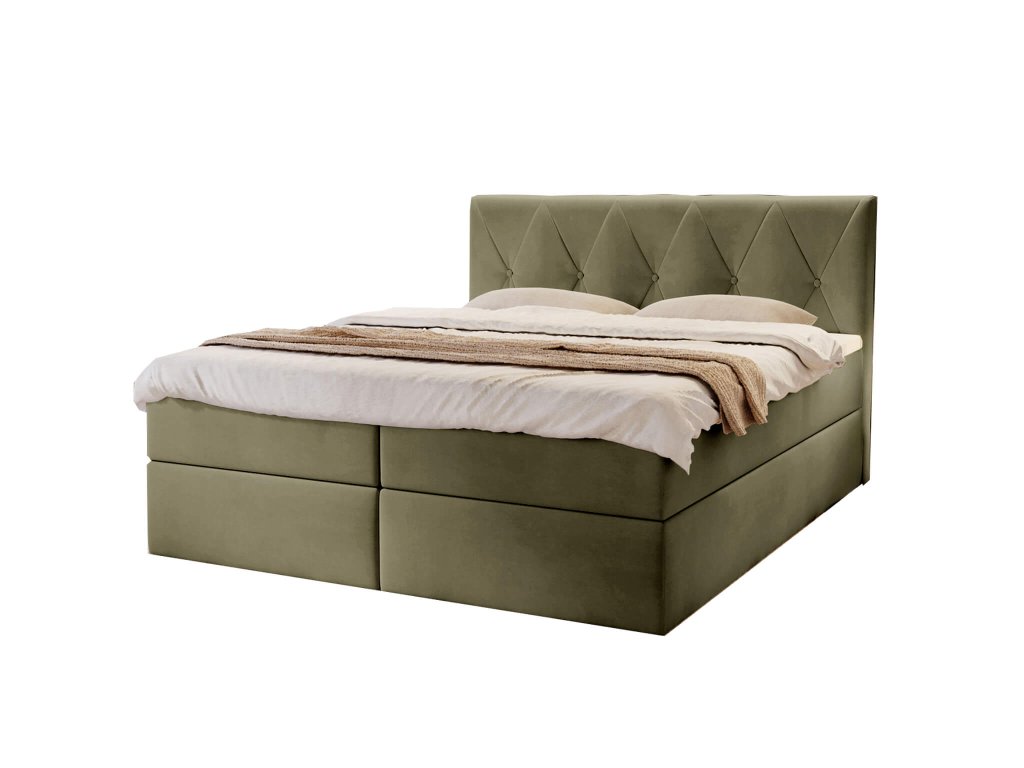 Spálňa je srdcom vášho domova, miestom, kde nachádzate pokoj a obnovujete energiu pre nový deň. Naša čalúnená boxspringová manželská posteľ DEAN v olivovej farbe je dokonalou kombináciou komfortu a štýlu. S úložným priestorom a robustnou konštrukciou z masívneho dreva a laminovanej drevotriesky poskytuje nielen eleganciu, ale aj odolnosť. Čelo postele zdobí jemné prešívanie z peny T25, čo zabezpečuje stabilitu a dlhodobú použiteľnosť. Vďaka zabudovanému roštu a matracu s 9 zónami tvrdosti a bodovou elasticitou, táto posteľ dokonale podporuje vaše telo pre pokožku a odpočinok. Užite si luxusný spánok s našou posteľou DEAN a zažite dokonalú harmoniu v spálni.