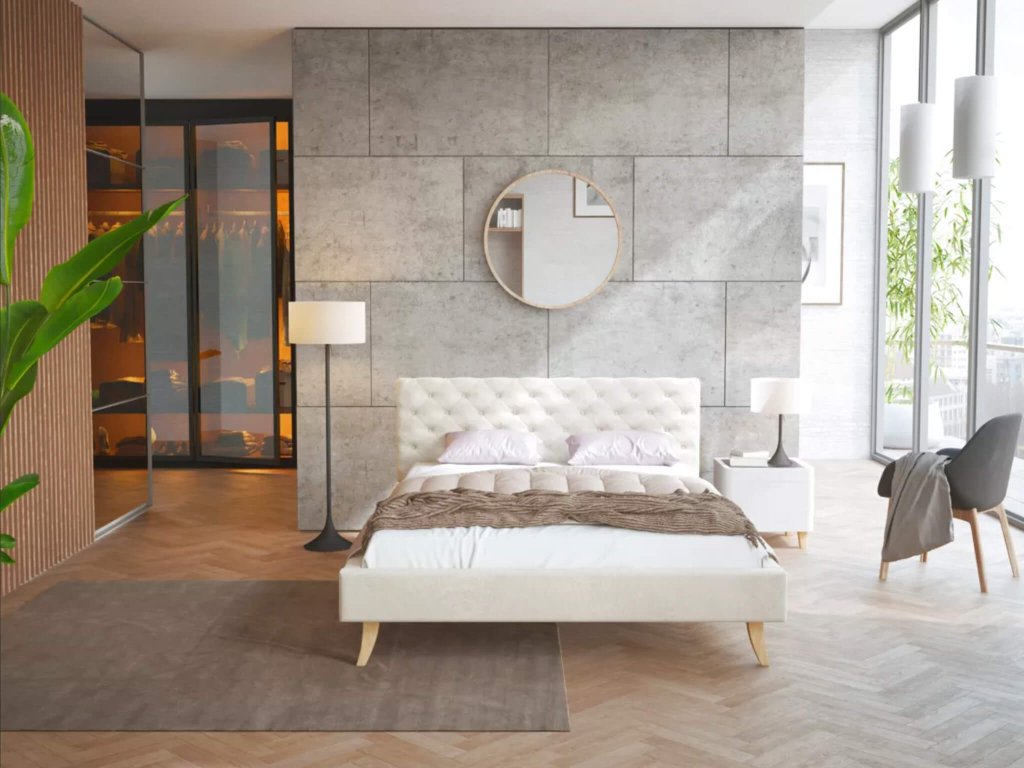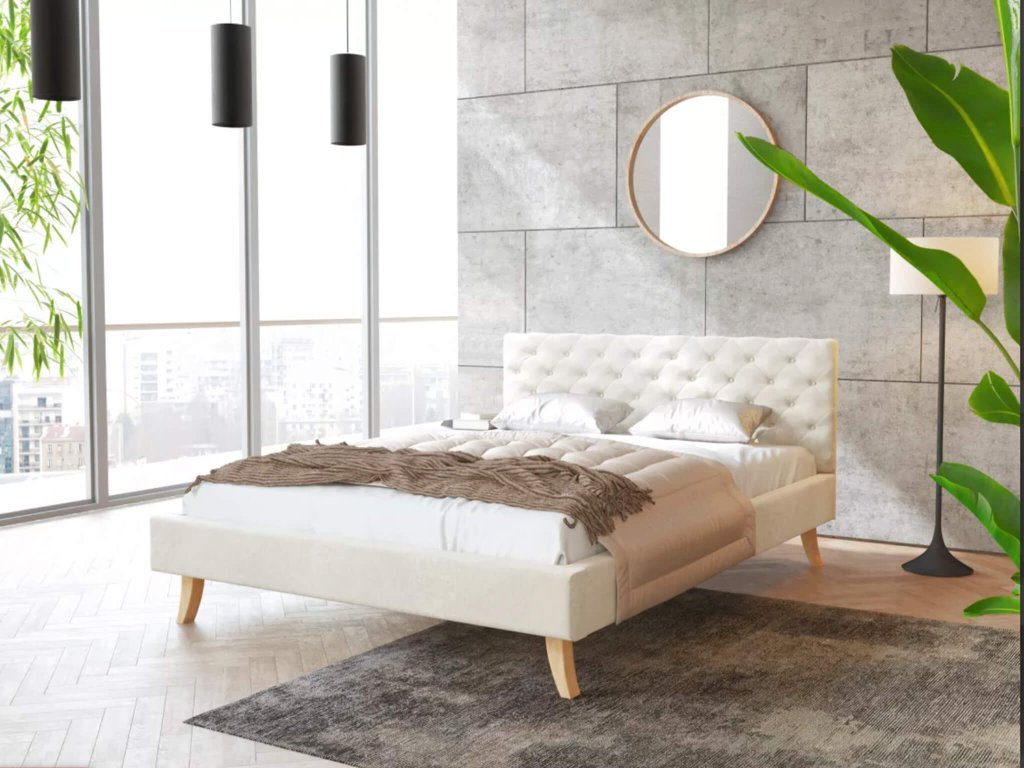 Nájdite absolútnu pohodu počas vašich snov v úchvatnej manželskej posteli Kalifornia. Tento pôsobivý nábytok kombinuje štýlový dizajn s prvotriednou praktickosťou. Vďaka jemnému krémovému čalúneniu a pevným masívnym nohám vytvára dokonalý kúsok nábytku, ktorý sa pýši svojou luxusnou a nadčasovou estetikou. Vneste do svojho interiéru štýl s touto posteľou, ktorá je priam stvorená pre škandinávsky či moderný dizajn. Jej dekoratívne prešívané mäkké čelo pridáva do vášho priestoru šarm a romantiku, čím sa stáva dokonalým miestom na oddych, čítanie kníh alebo romantické chvíle. Ale nie len jej krása je ohromujúca. S manželskou posteľou Kalifornia sa nemusíte báť bolesti nôh pri vstávaní ráno. Jej pevné spojenie komponentov zabezpečuje, že každý zvuk, pohyb alebo otres sa prenesie minimálne, čo vám umožní nečakane krásne ranné prebudenie. Tak si doprajte túto malú oázu pohodlia a relaxu so svojou novou manželskou posteľou Kalifornia a nechajte sa zladiť na tóne svojich snov.