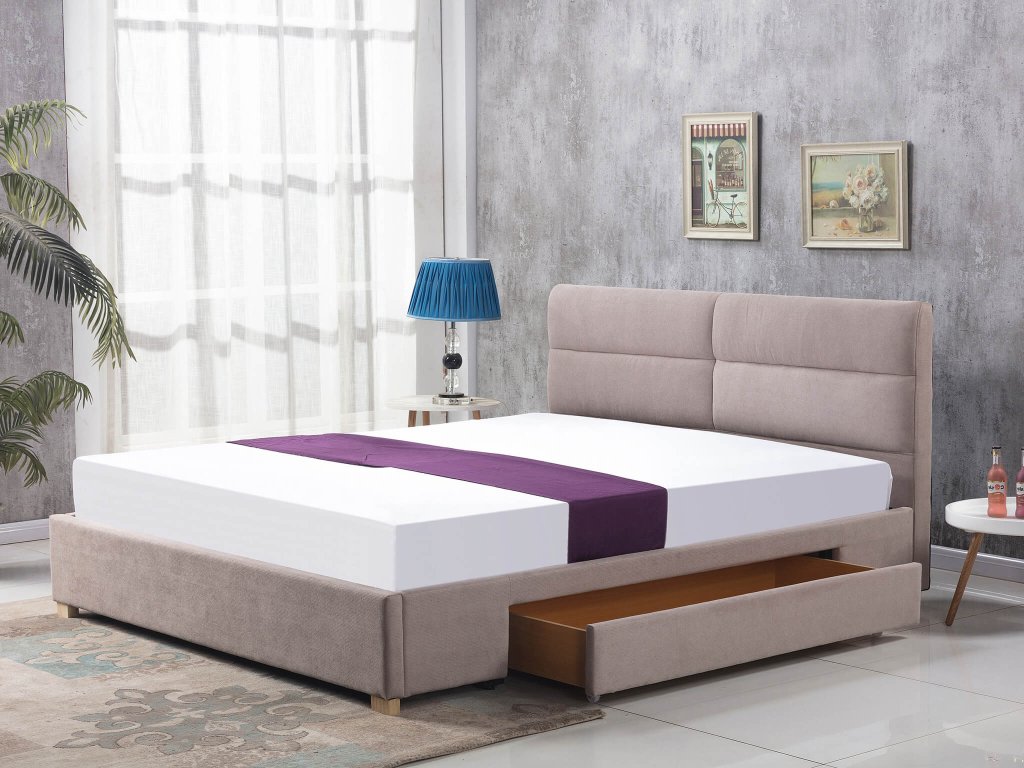 Čalúnená manželská posteľ Merida II 160x200 s úložným priestorom - béžová