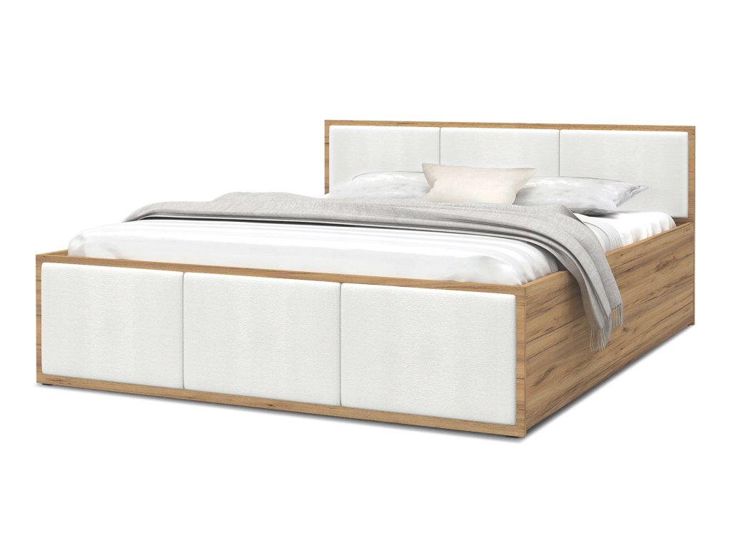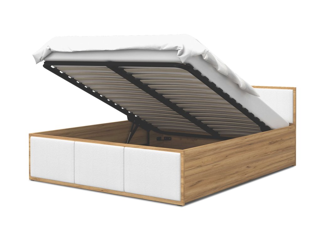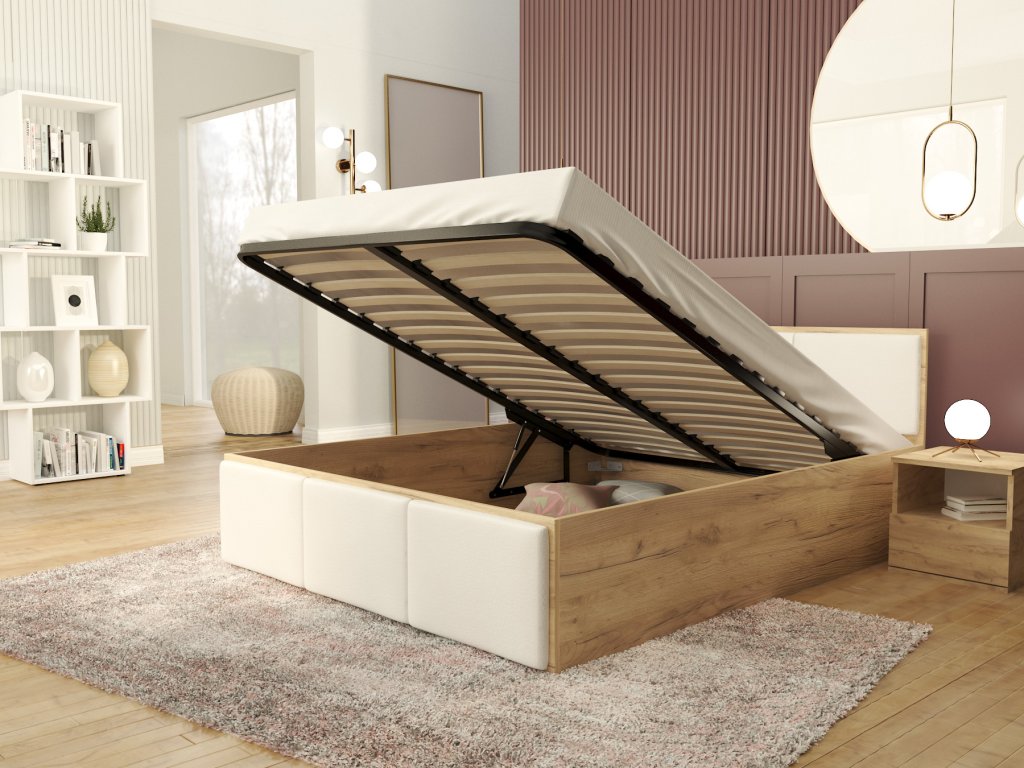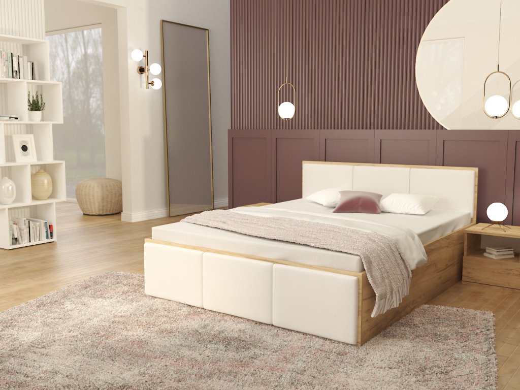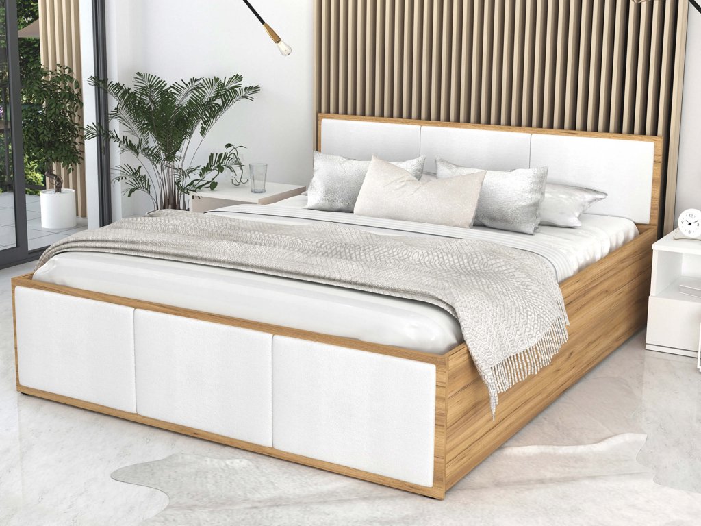 Čalúnená manželská posteľ s úložným priestorom Dolly - dub craft/biela
