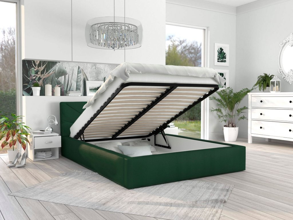 Čalúnená manželská posteľ s úložným priestorom Gabina - tmavozelená