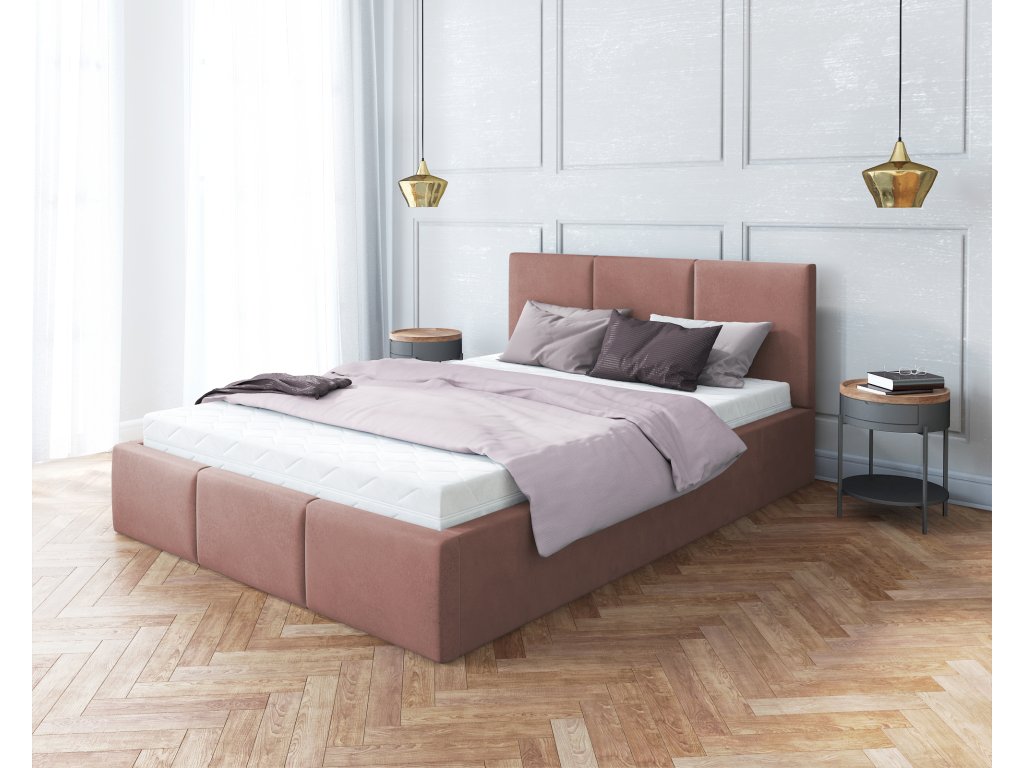 Hľadáte ružovú čalúnenú manželskú posteľ do spálne? Stavte na unikátnu posteľ Izabela 140x200 / 160x200 / 180x200. Dizajnové vysoké čelo poskytne vynikajúcu podporu pre chrbát, či už pri čítaní kníh alebo pozeraní filmov. Výhodou postele je veľký úložný priestor. Posteľ je čalúnená velúrom, ktorý je veľmi jemný a príjemný na dotyk, a navyše sa nežmolkuje. Posteľ má kovový rám s pružnými brezovými lištami. Nosnosť postele je 360 kg. Na dvíhanie roštu v posteli sú využívané dva plynové piesty o sile 400 N až 1000 N/ks, v závislosti od rozmeru postele.