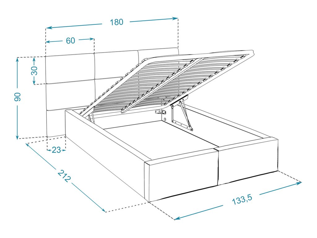 - Materiál: látka Trinity (100 % polyester), konštrukcia z nábytkovej DTD dosky, plynové piesty na zdvíhanie roštu