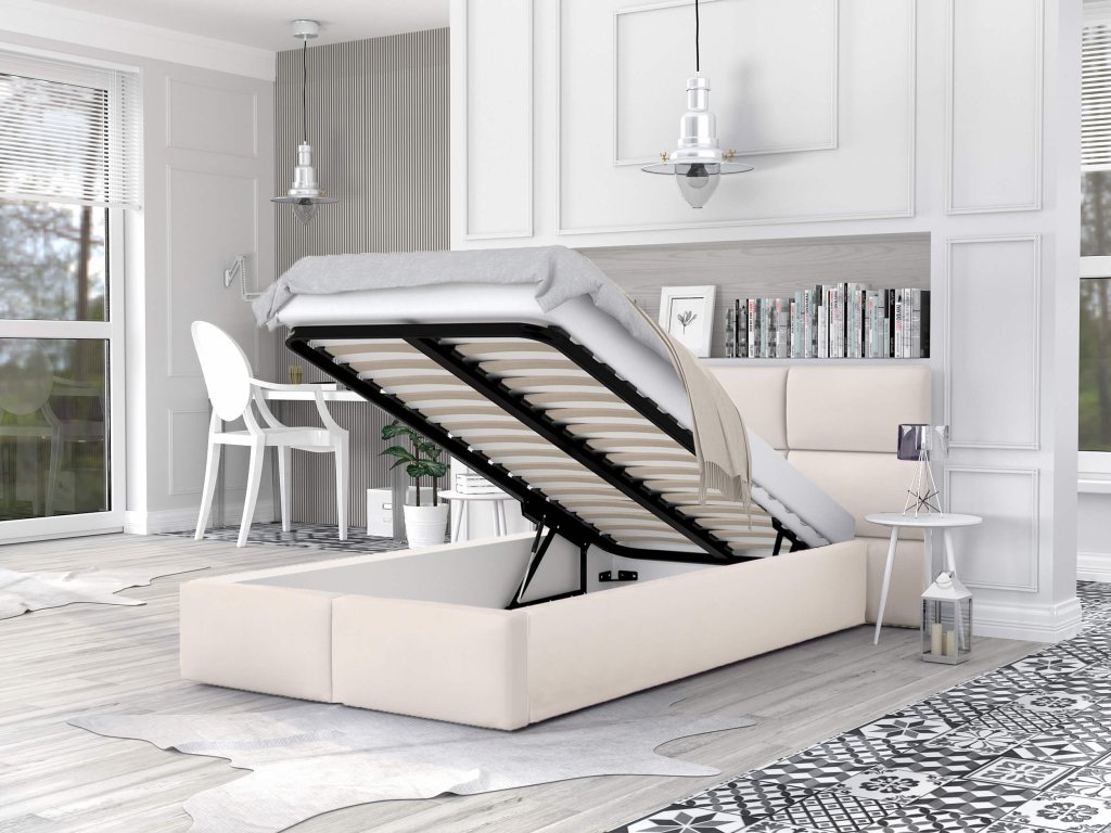 Čalúnená posteľ 120x200 s úložným priestorom Dony - krémová