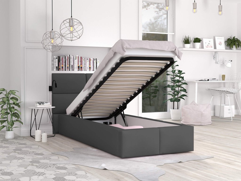Čalúnená posteľ 90x200 s úložným priestorom Dony - grafit
