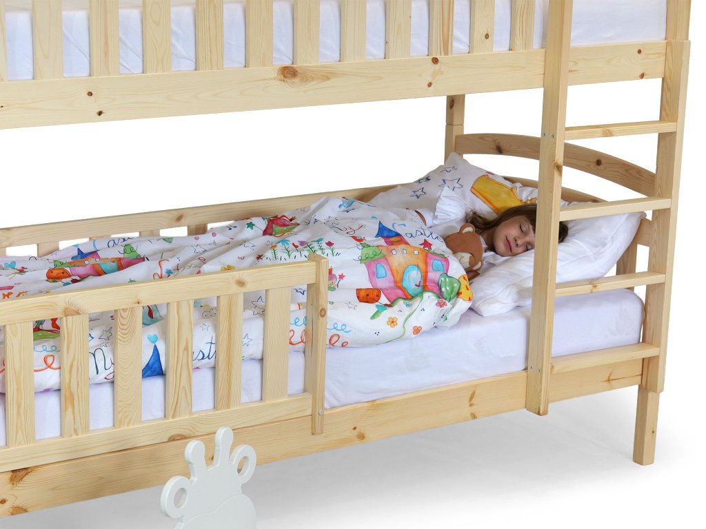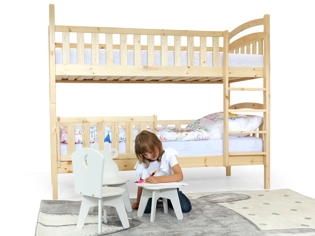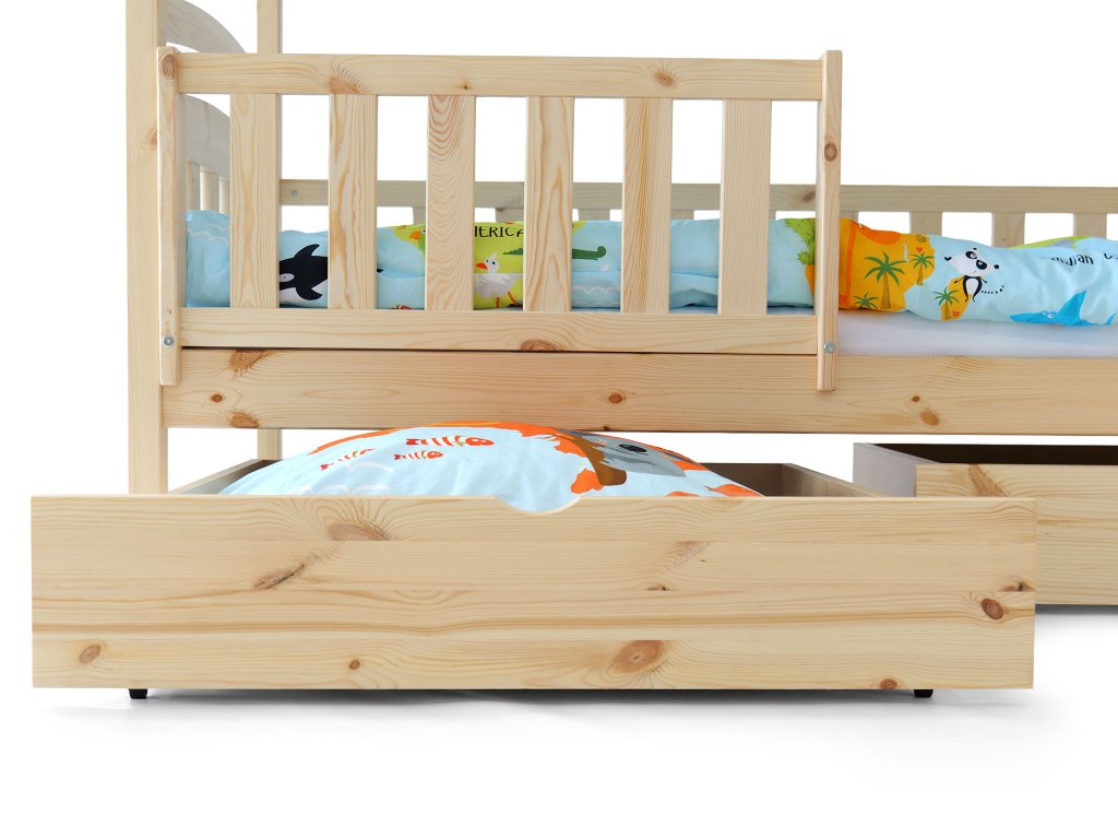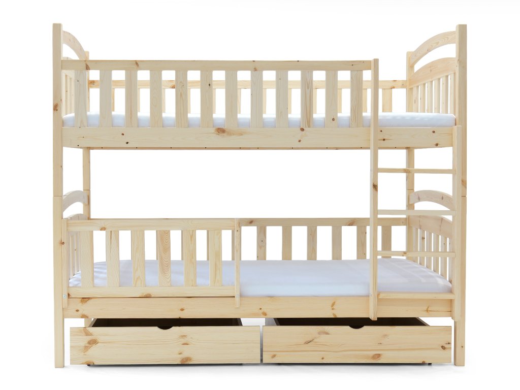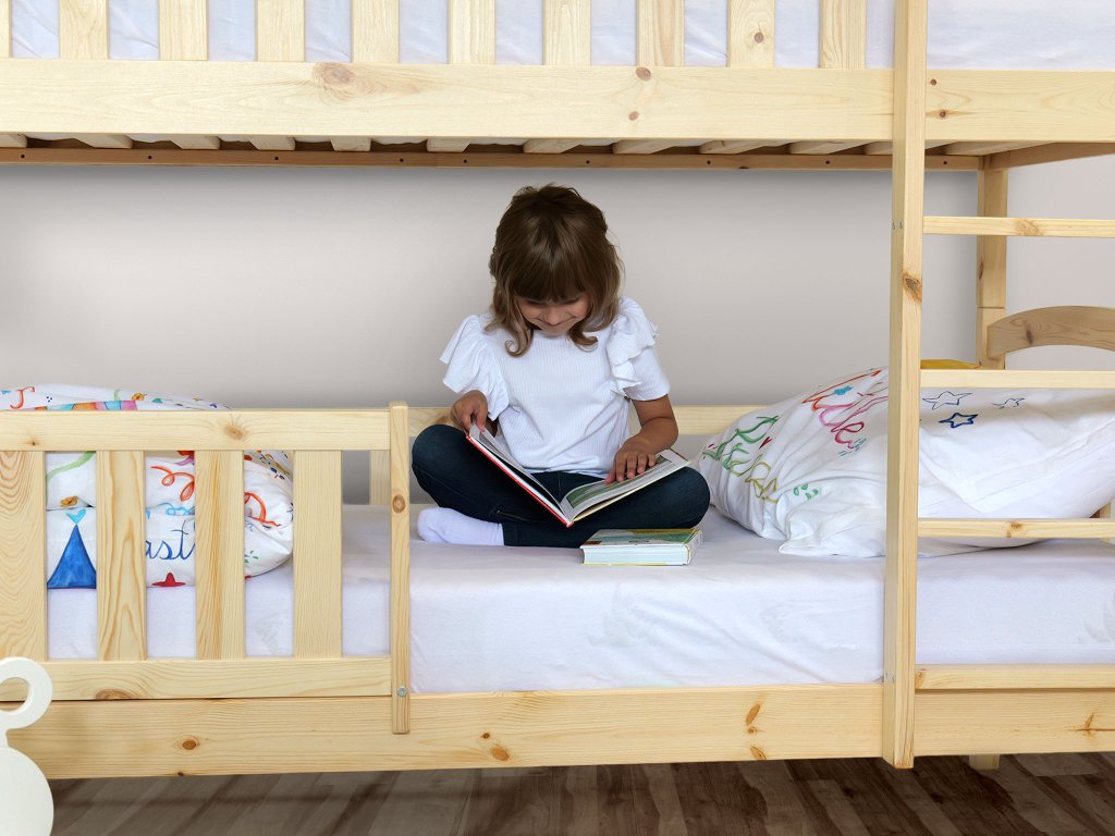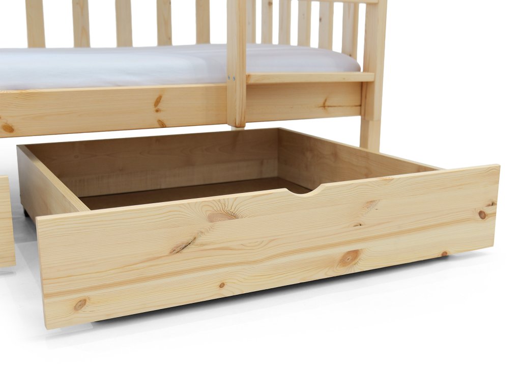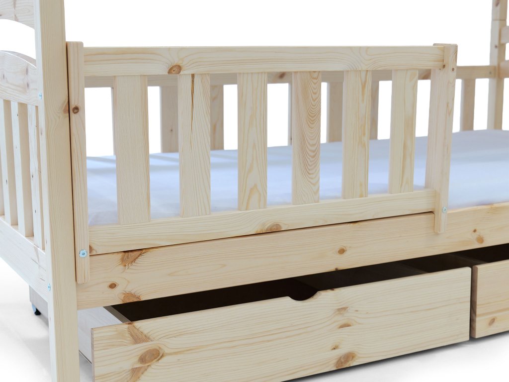 Kvalitná poschodová posteľ Paula 7 je vyrobená z masívneho borovicového dreva v prírodnom prevedení. Vyznačuje sa veľmi pevnou a stabilnou konštrukciou. Je lakovaná ekologicky nezávadným lakom. Posteľ je s 2 úložnými priestormi, ktoré nie sú upevnené, a tak manipulácia s nimi je veľmi jednoduchá. Navyše sú na kolieskach, a tak chránia Vašu podlahu pred poškodením. Posteľ je možné rozložiť na dve samostatné lôžka. Spoj postelí je riešený kolíkmi, a tak môžete posteľ veľmi rýchlo a jednoducho zložiť alebo rozložiť. Rebrík k posteli je obojstranný, čo znamená, že posteľ môžete namontovať s rebríkom na pravej alebo ľavej strane. Rebrík sa vyznačuje širokou skosenou nástupnou plochou, a tak dieťaťu zabezpečuje pohodlné vyliezanie a zliezanie z postele. Poschodové postele vám ušetria veľa miesta v izbe, ktoré môžu vaše deti využiť na hranie. Bariéra na spodnú časť postele je v cene.