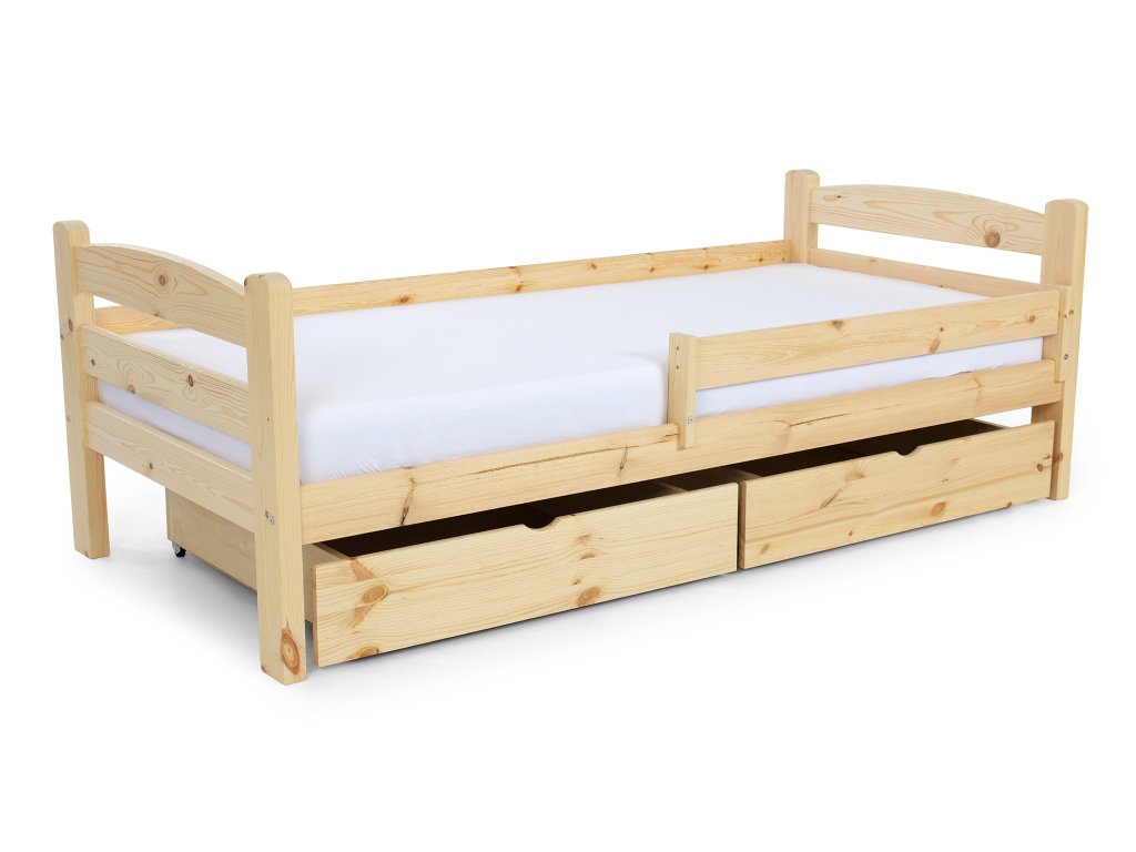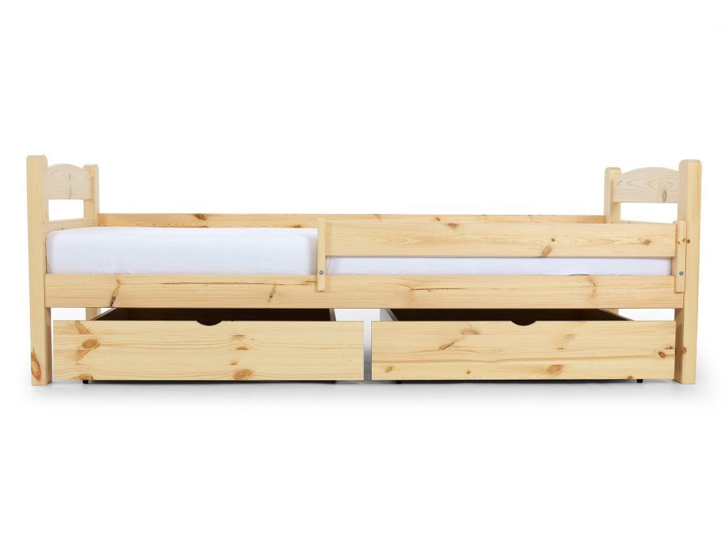 Jednolôžková posteľ Oľga 5 200x90 cm je vyrobená z kvalitného masívu borovice.Ošetrená je bezfarebným ekologickým lakom. Vďaka použitiu kvalitných materiálov je posteľ odolná a stabilná. Posteľ sa dodáva spolu s roštom a úložným priestorom v podobe dvoch boxov. Manipulácia s úložnými boxami je jednoduchá, pretože nie sú nijako upevnené k posteli. Posteľ navyše disponuje odnímateľnou bezpečnostnou bariérou, ktorá chráni dieťatko pred pádom z postele. Môžete namontovať na ktorúkoľvek stranu postele, podľa vašej potreby.