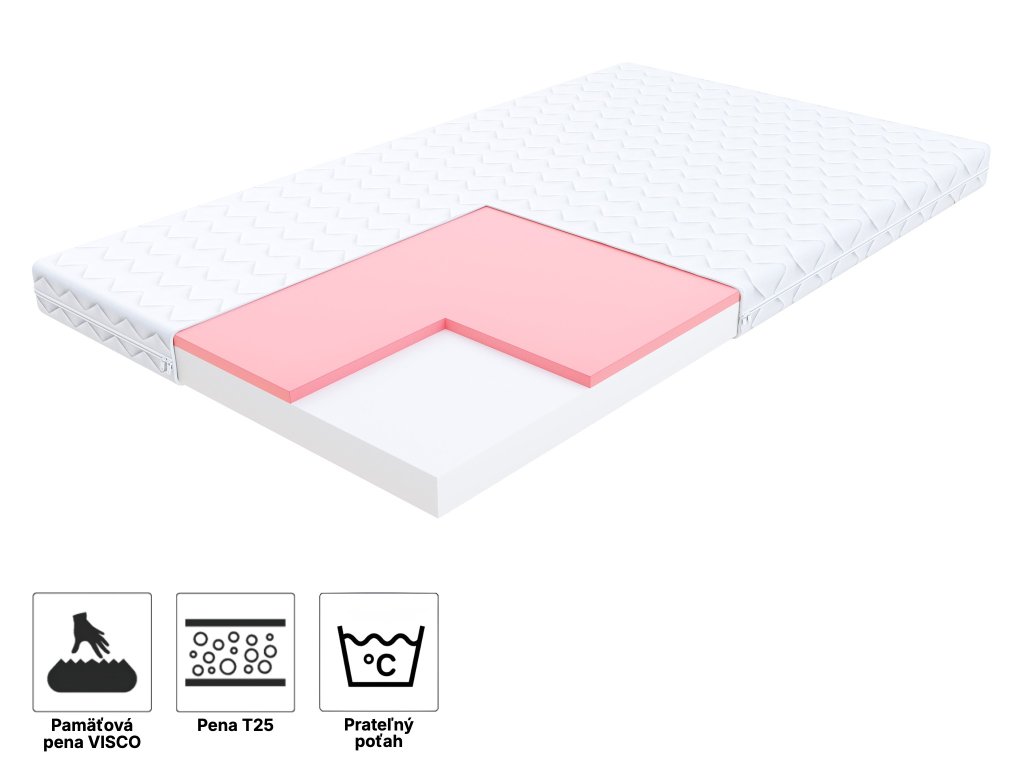 Materiálové zloženie: Pamäťová Visco pena, Polyuretánová pena, Poťah