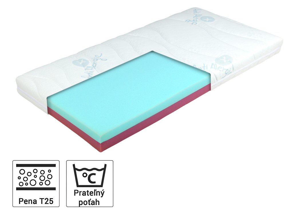 Matrac Olaf využíva sendvičovú skladbu pur pien vyššej hustoty, ktorá ponúka dve rôzne tvrdosti. Táto kombinácia poskytuje matracu potrebnú pevnosť a dlhú životnosť. S antialergickým poťahom na zips je matrac až primitívne jednoducho udržiavateľný a tým pádom aj veľmi hygienický. Odnímateľný poťah môžete prať v automatickej práčke na 60 °C.
