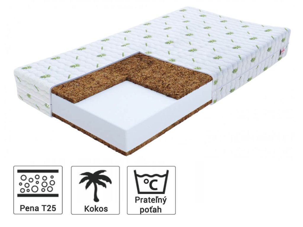 Materiálové zloženie: Polyuretánová pena, Kokosová vrstva, Poťah