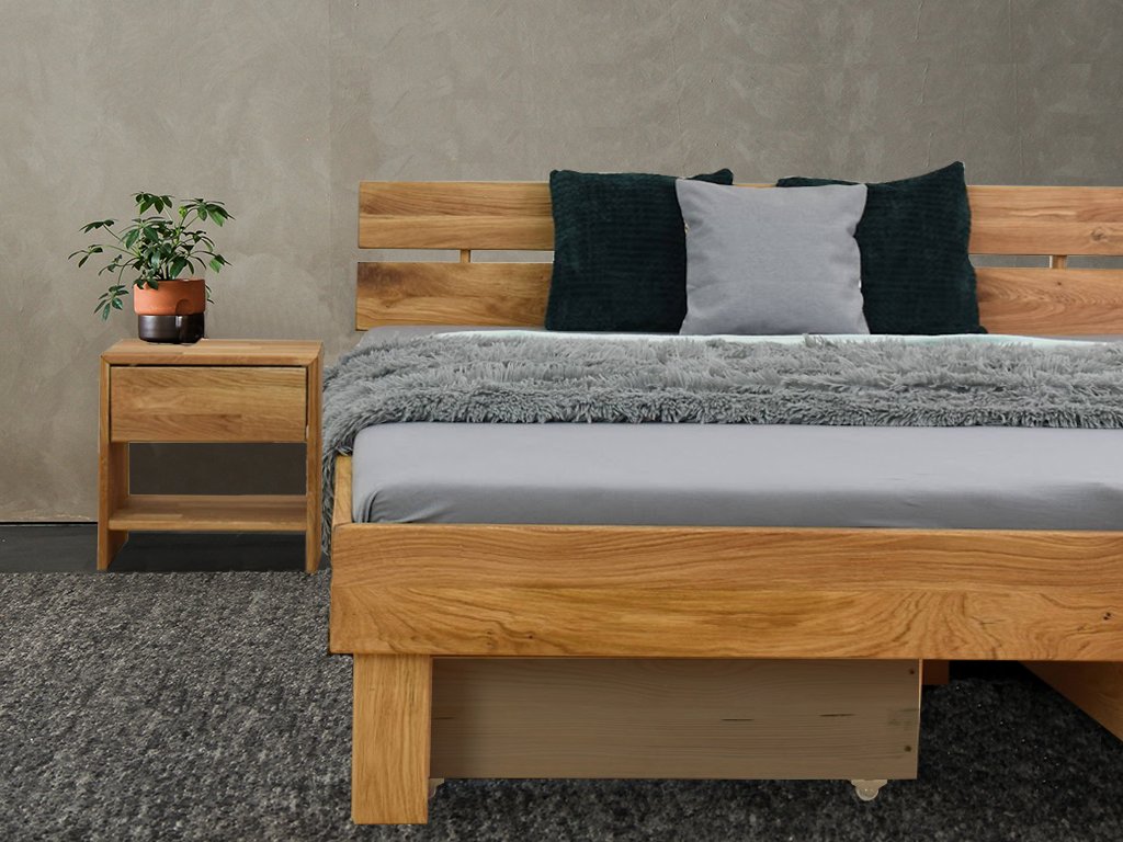 Drevená posteľ ALEA je vyrobená z naolejovaného masívneho dubu s hrúbkou dosiek 2 cm. Použitý je ekologicky olej, ktorý ju chráni pred vlhkosťou a nečistotami. Prírodná farba dubového dreva pôsobí veľmi príjemne a žiarivo, tak vytvorí útulnú atmosféru v každej izbe. Drevo a kvalitné spoje postele zabezpečujú vysokú pevnosť, odolnosť a bezpečnosť.Výhodou je, že sa ľahko udržiava a čistí. Ku posteli si môžete objednať sadu 2 ks úložných boxov alebo sadu 4 ks úložných boxov.