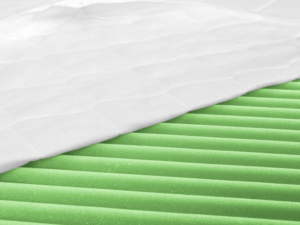 Materiál, vyrobený z kvalitnej 7-zónovej peny s profilovaným povrchom, podporuje lepšiu cirkuláciu krvi a uvoľnenie svalov počas odpočinku. Na základe telesnej teploty sa prispôsobuje tvaru vášho tela, čím zvyšuje komfort a kvalitu spánku. Rôznorodá tvrdosť v každej zóne poskytuje optimálnu podporu pre chrbticu a umožňuje prirodzenú polohu celého tela. Tento typ peny je tiež ideálny pre osoby s citlivosťou na alergény.