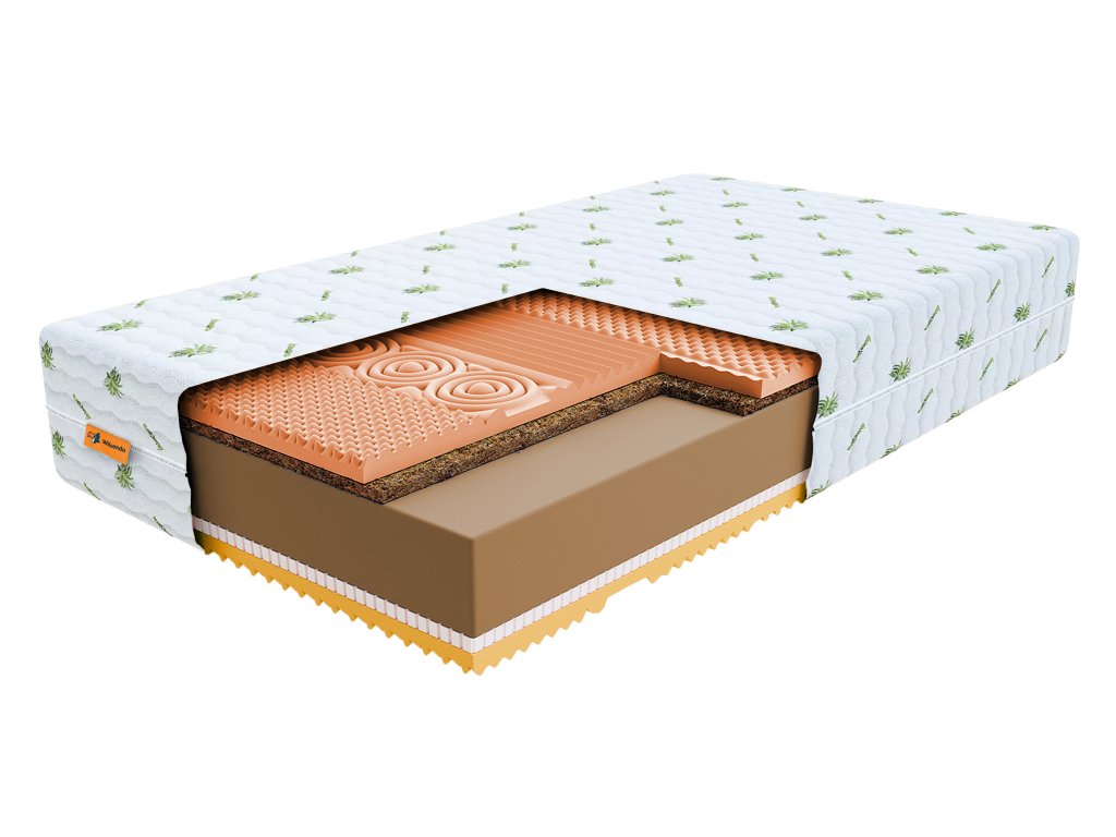 Materiálové zloženie: Profilovaná studená HR pena, Latex, Kokos, Polyuretánová pena, Profilovaná pamäťová VISCO pena