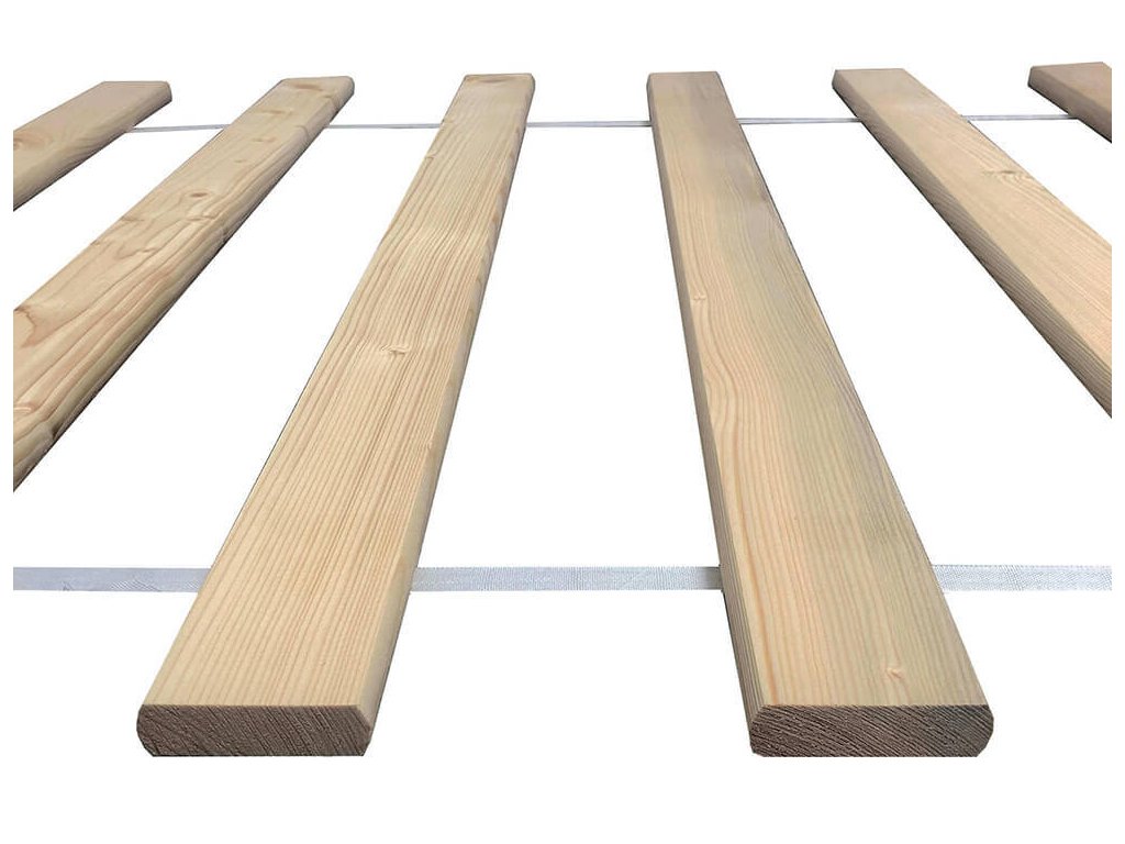 Latový rošt do postele 90x200 cm je vyrobený z borovicového masívu, laty sú spojené bavlneným pásmom a je možné ho priskrutkovať k rámu postele. Rošt do postele je vhodný pre základné, penové i penové matrace s kokosovou doskou. Rošt vytvorí pevnú plochu na spanie a skvele odvetrá Váš matrac.