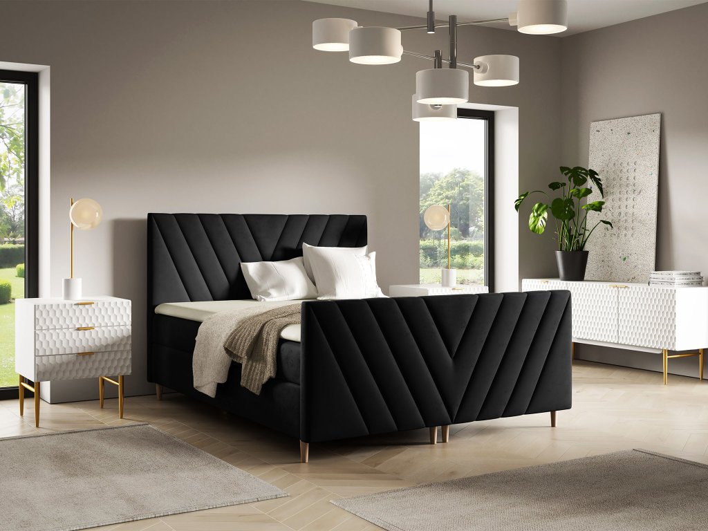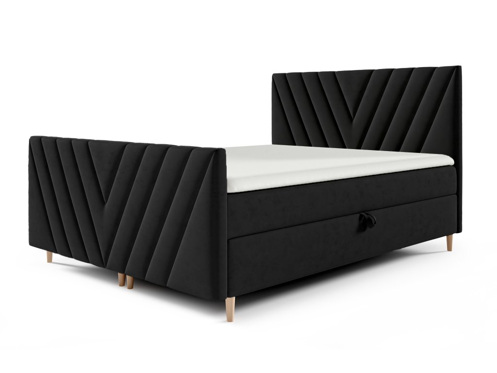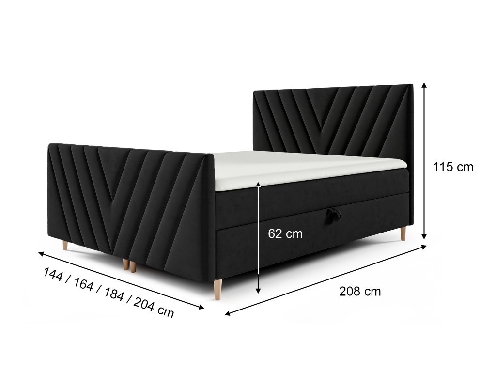 Vylepšite svoju spálňu s modernou boxspringovou posteľou Beno Plus v škandinávskom štýle, ktorá spája komfort, štýl a praktickosť. Vyznačuje sa vysokým prešívaným čelom a elegantnými drevenými nožičkami vo farbe Sonoma, ktoré jej dodávajú nadčasový a sofistikovaný vzhľad. Posteľ obsahuje dva úložné boxy po stranách, ktoré sa jednoducho otvárajú vďaka automatickému pružinovému systému, čím poskytujú dostatok priestoru na uskladnenie vašich vecí. Boxspringový systém zaručuje lepšiu ventiláciu a reguláciu teploty počas spánku, čo prispieva k pohodlnému a zdravému odpočinku. Luxusný vzhľad postele podčiarkuje prešívanie v tvare „V“ na opierke hlavy a prednej časti postele. Posteľ je vybavená matracom s Bonell pružinami a penou T30, ktoré poskytujú optimálnu oporu a pohodlie. Vrchný topper z vysoko elastickej peny T25, s výškou 5 cm, zaisťuje ďalšiu vrstvu komfortu a je súčasťou postele. Pre zachovanie jeho kvality sa odporúča pravidelné otáčanie každé 2-3 mesiace. Čalúnenie postele je z látky Fresh v elegantnej čiernej farbe, vyrobenej zo 100% polyesteru, ktorý je odolný voči opotrebeniu a ľahko sa udržiava. Posteľ Beno Plus, vďaka svojmu štýlovému dizajnu a funkčným vlastnostiam, bude jedinečným miestom pre váš odpočinok.