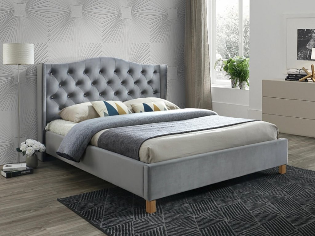 Najpohodlnejšia posteľ, na ktorej môžete relaxovať a dokonale odpočívať po náročnom dni - sivá čalúnená posteľ Aspen Velvet. Hodí sa do každého interiéru, ktorý je zariadený v modernom či elegantnom štýle. Drevo a zamatové tkaniny, ktoré boli použité na vyrobenie postele, sa vyznačujú vysokou trvanlivosťou a odolnosťou voči rôznym druhom poškodenia. Moderný dizajn a nadčasové farby postele z nej urobia nielen praktický kus nábytku, ale aj príjemnú dekoráciu miestnosti. Posteľ stojí na drevený robustných nožičkách.