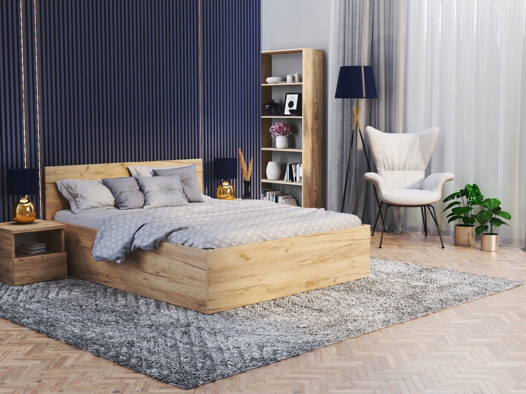 Unikátna manželská posteľ Dorian vo farbe dub craft s kresbou dreva očarí každého. Posteľ je vyrobená z kvalitnej nábytkovej dosky DTD o hrúbke 16-18 mm, ktorá je odolná a jendoducho sa čistí. Súčasťou postele je kvalitný pevný drevený rošt. Posteľ sa vďaka svojmu minimalistickému dizajnu hodí do každej spálne.