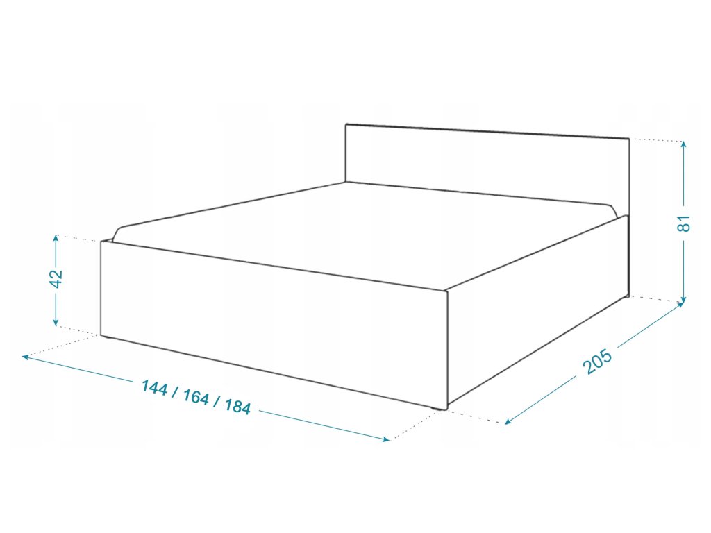 - Rozmery postele (šxvxh):