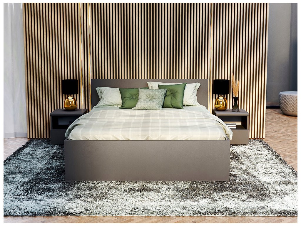 Moderná manželská posteľ Dorian Vás očarí svojim jednoduchým vzhľadom a krásnym sivým prevedením. Posteľ je vyrobená z kvalitnej nábytkovej dosky DTD o hrúbke 16-18 mm, ktorá je odolná a ľahko sa čistí. Súčasťou postele je kvalitný pevný drevený rošt. Posteľ sa vďaka svojmu minimalistickému dizajnu hodí do každej spálne.