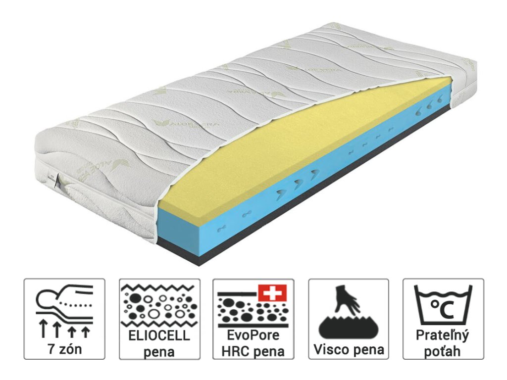 Materiálové zloženie: Elastická pena VISCO, ELIOCELL PENA, EvoPore HRC pena, poťah