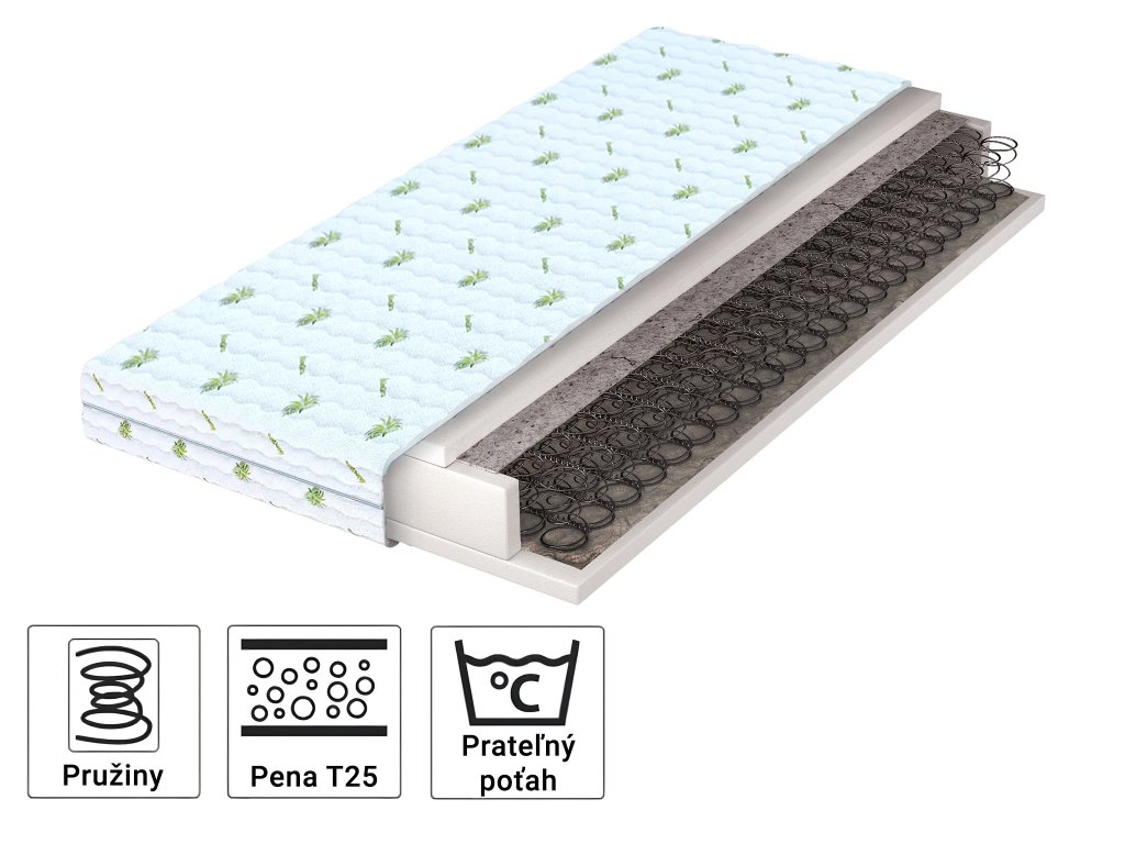 Materiálové zloženie: Polyuretánová pena T25, filc, bonellové pružiny, poťah Aloe Vera
