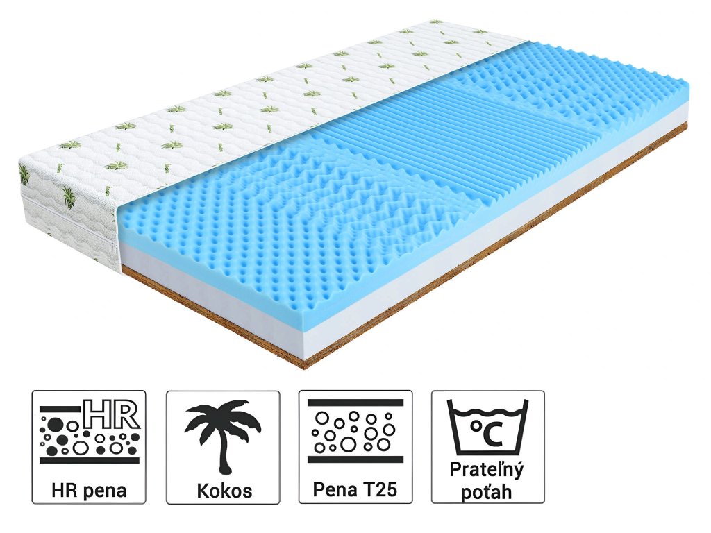 Materiálové zloženie: Polyuretánová pena, Kokosová vrstva, Studená HR pena, Poťah