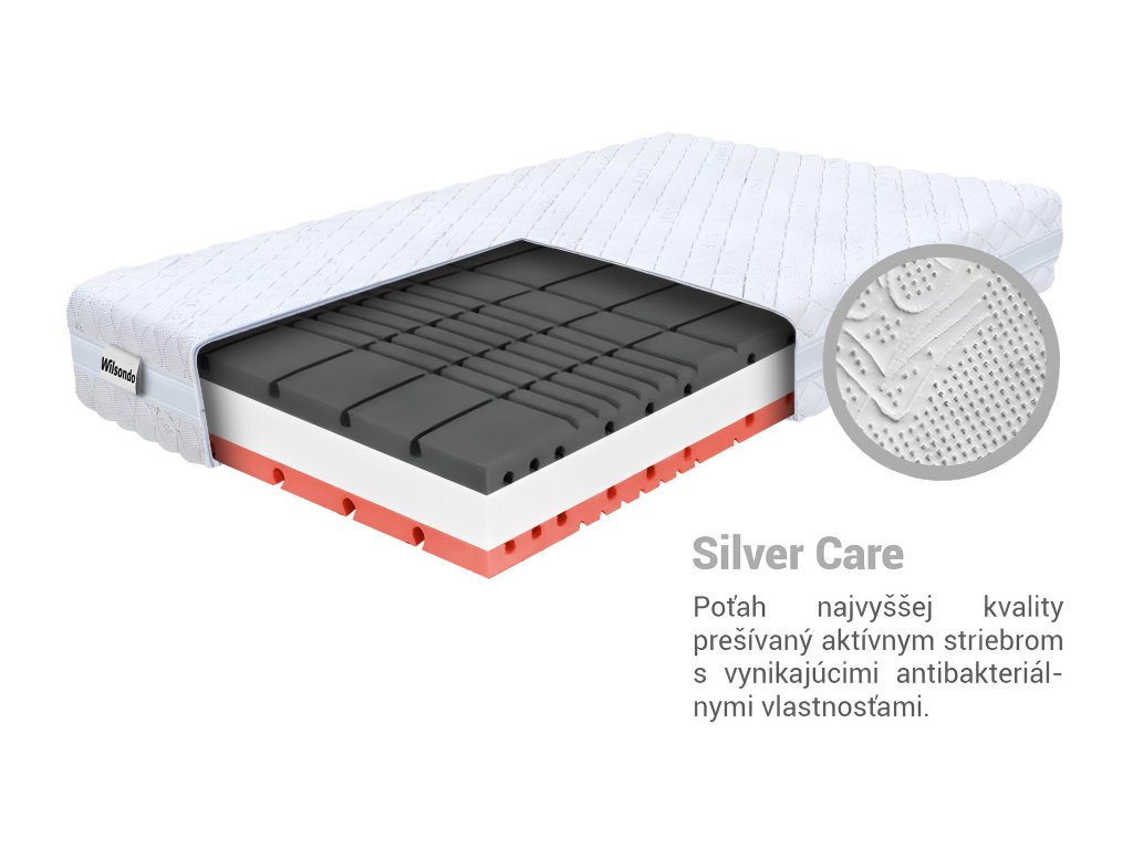 Matrac Amico je vybavený odnímateľným poťahom Silver, prešívaným aktívnym striebrom, ktorý prispieva k antibakteriálnym vlastnostiam a udržuje matrac svieži a čistý. Pre ešte väčšiu hygienu je poťah prateľný na 30 °C. Poťah je vybavený 3D ventilačnou páskou, ktorá sa postará o cirkuláciu vzduchu. Pre predĺženie životnosti a ochranu matraca odporúčame používať chránič na matrac.