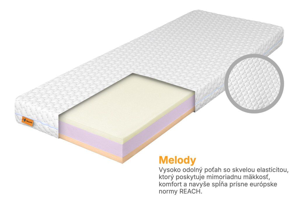 Materiálové zloženie: polyuretánová pena T25, HR pena, pamäťová pena, poťah Melody