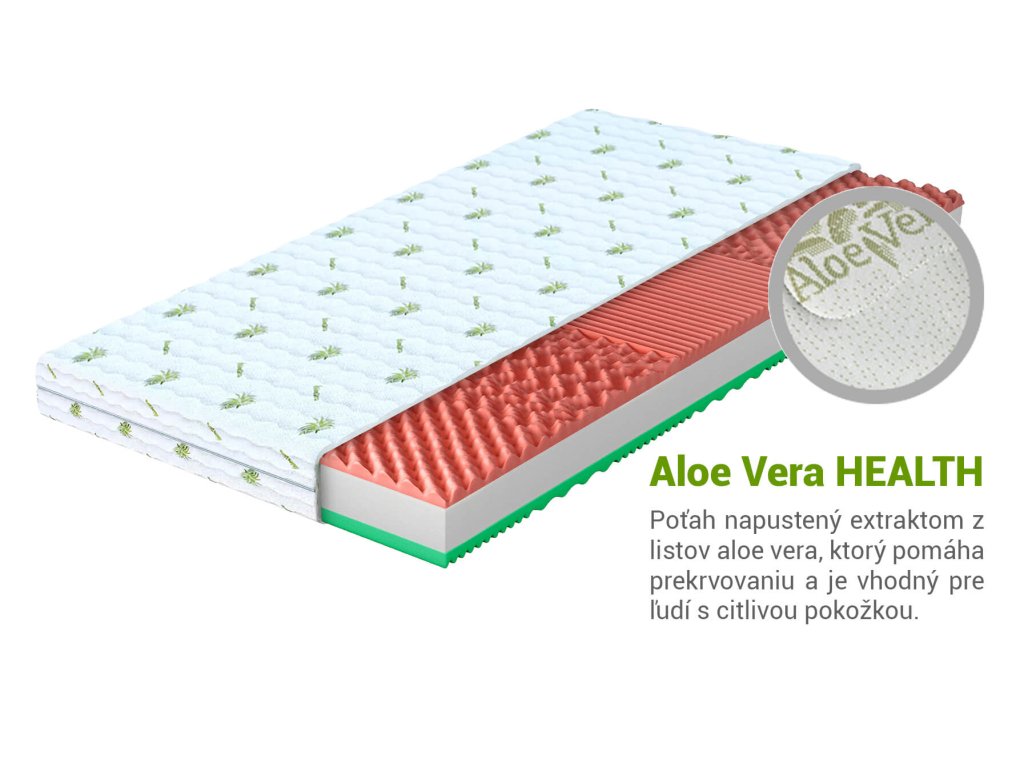 Materiálové zloženie: profilovaná polyuretánová pena T25, polyuretánová pena T25, profilovaná polyuretánová pena T28, poťah Aloe Vera