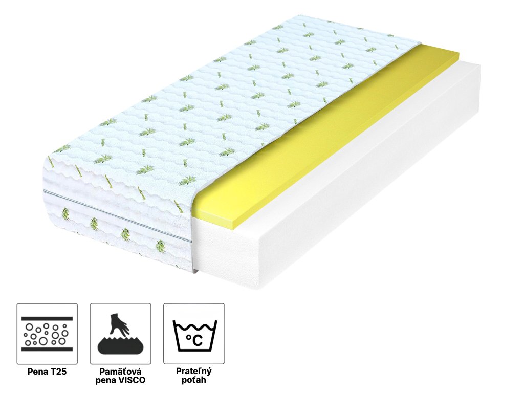 Materiálové zloženie: Pamäťová pena (3 cm), Polyuretánová pena T25 (13cm), Poťah