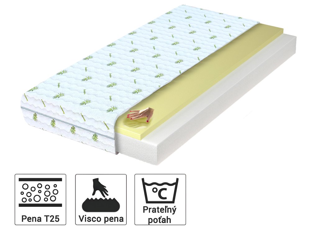 Materiálové zloženie: Pamäťová pena (3 cm), Polyuretánová pena T25 (13cm), Poťah