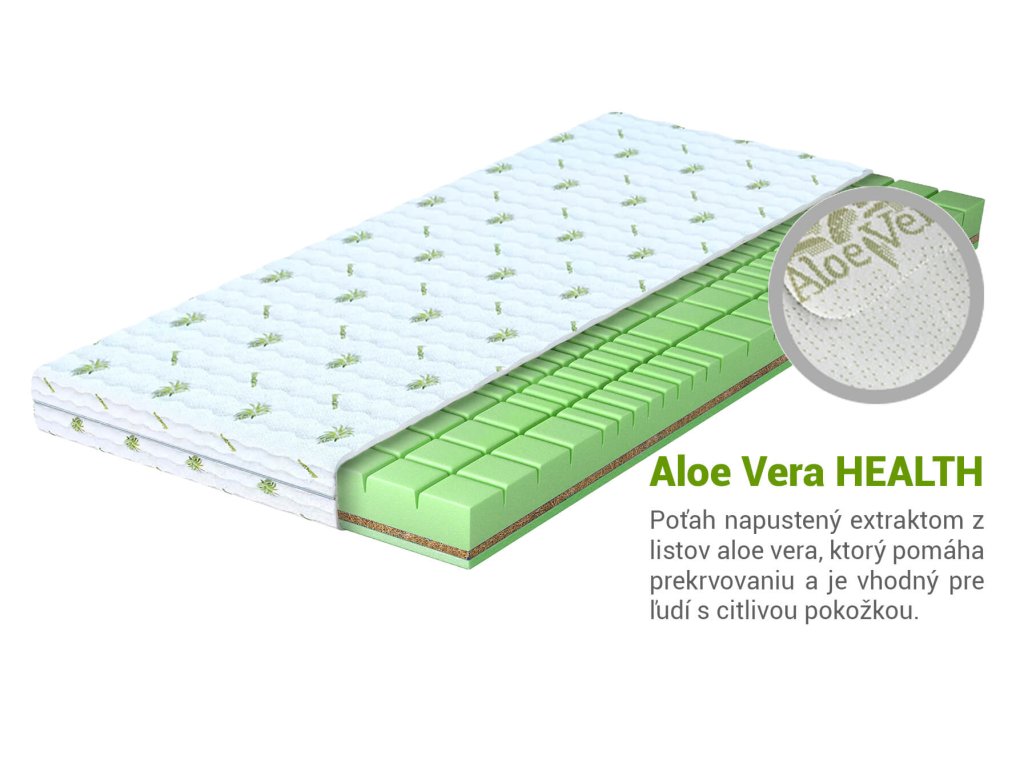 Bonusom tohto matracu je aj snímateľný poťah z extraktu rastliny Aloe Vera, ktorá je antibakteriálna a antialergická. Preto ho odporúčame, ak máte problém s citlivou kožou alebo alergickými reakciami. Okrem toho, je prateľný na 30 °C v rukách, ale aj v práčke.