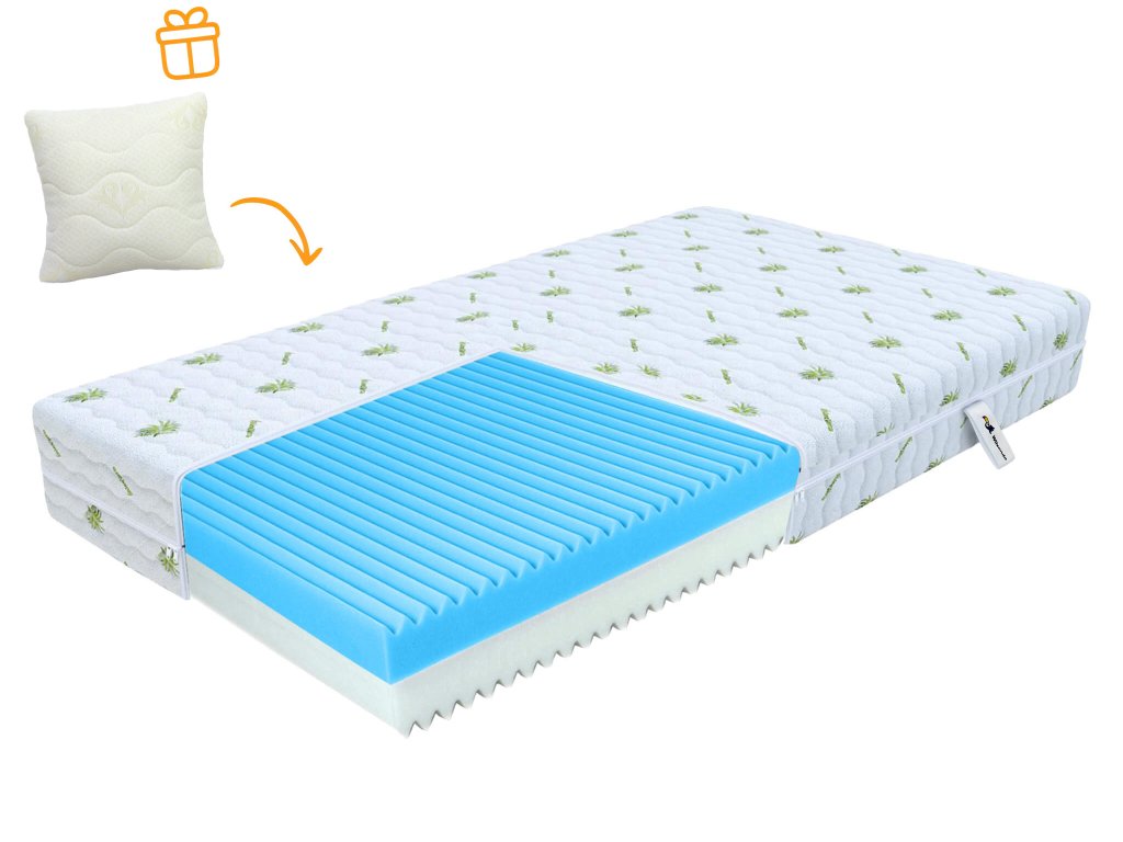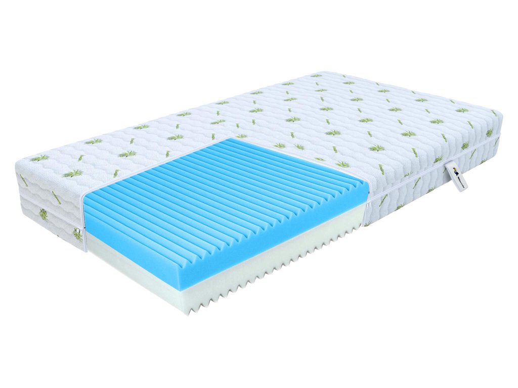 Materiál, vyrobený z kvalitnej 7-zónovej peny s profilovaným povrchom, podporuje lepšiu cirkuláciu krvi a uvoľnenie svalov počas odpočinku. Na základe telesnej teploty sa prispôsobuje tvaru vášho tela, čím zvyšuje komfort a kvalitu spánku. Rôznorodá tvrdosť v každej zóne poskytuje optimálnu podporu pre chrbticu a umožňuje prirodzenú polohu celého tela. Tento typ peny je tiež ideálny pre osoby s citlivosťou na alergény.