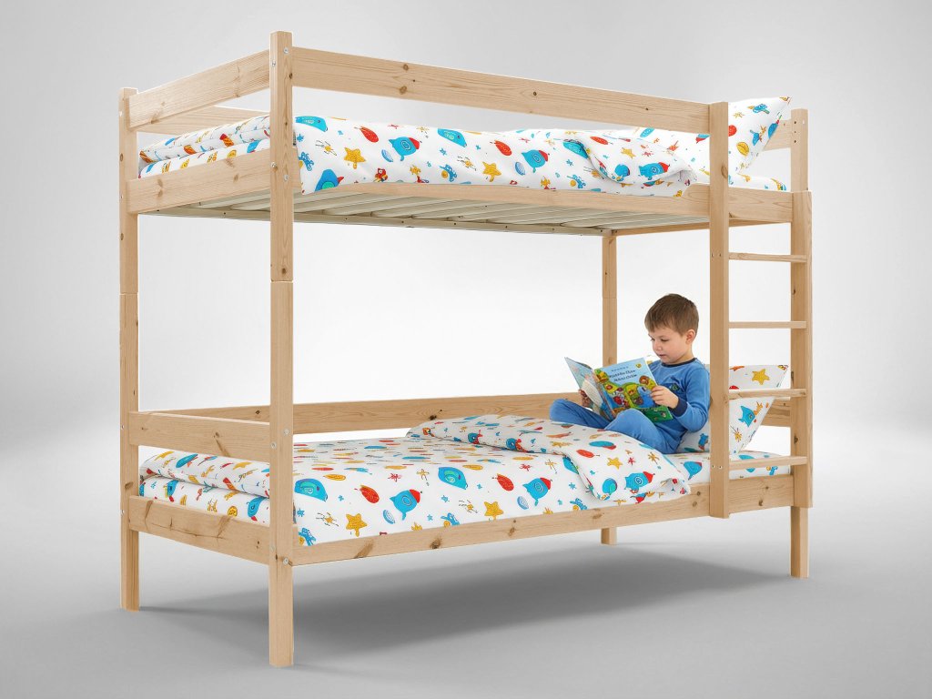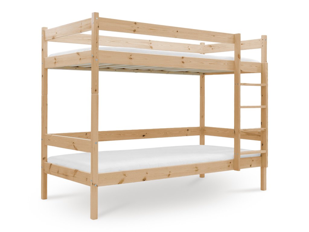 Poschodová posteľ z borovicového masívu pre dospelých i deti. Posteľ Vás prekvapí svojou praktickou funkciou rozkladu na dve samostatné lôžka. Postele sa spájajú kolíkmi, a tak je možné posteľ veľmi rýchlo a jednoducho zložiť alebo rozložiť. Rebrík je obojstranný, čo robí posteľ univerzálnou - je možné ju postaviť ako ľavú alebo pravú. Ak si potrpíte na kvalitu, posteľ je pre Vás vhodnou voľbou, nakoľko Vám bude slúžiť dlhé roky.