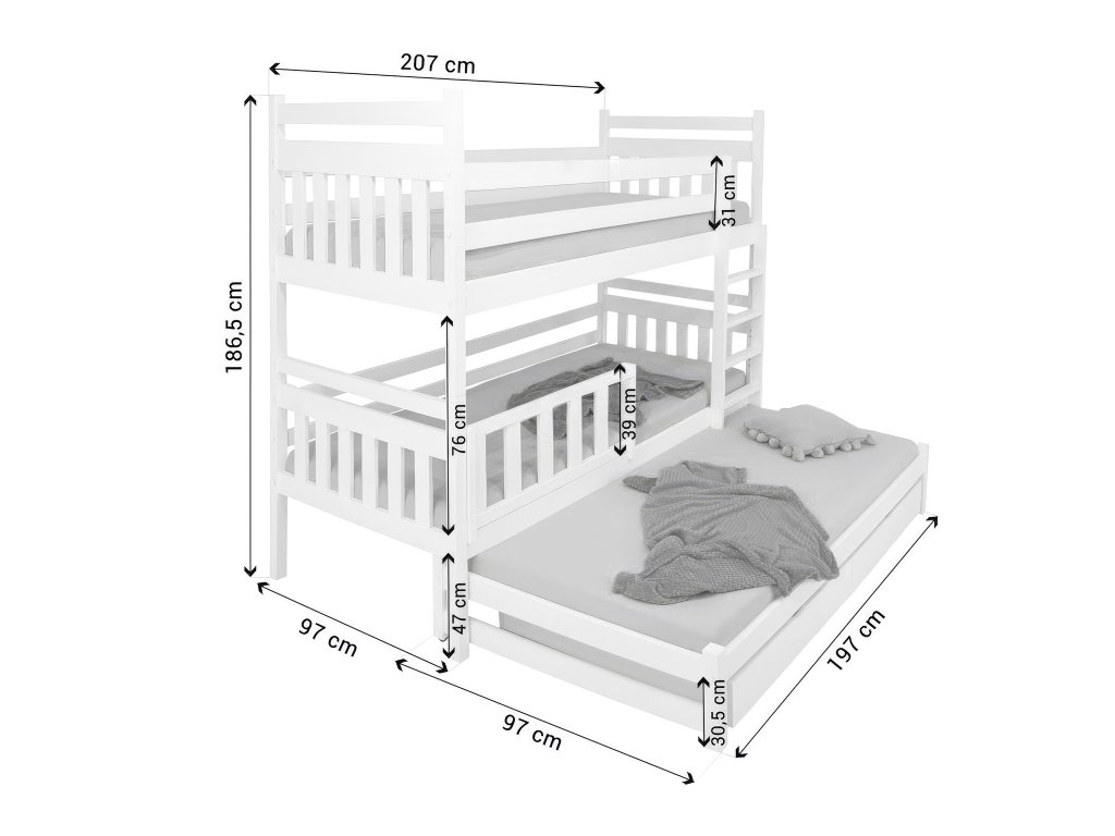 - Priestor medzi vrchným a spodným lôžkom: 76 cm