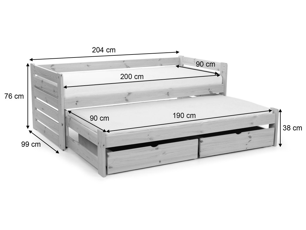 - Rozmer postele (šxvxh): 204 x 76 x 99 cm