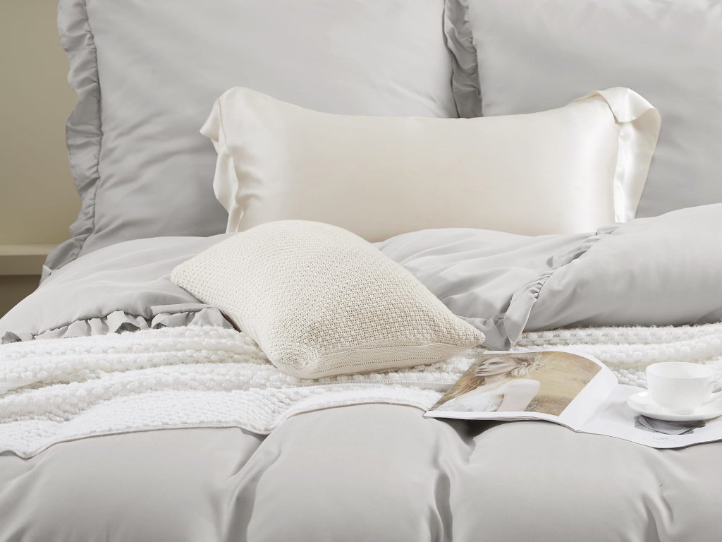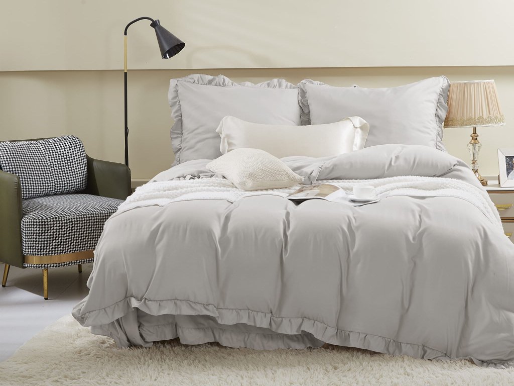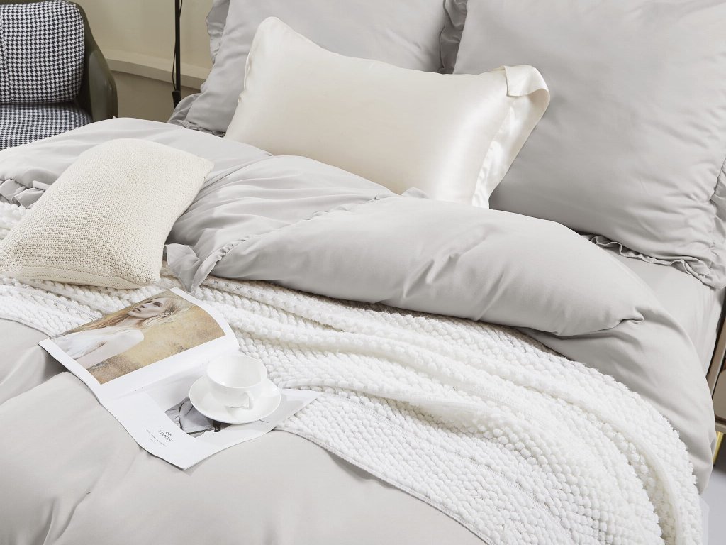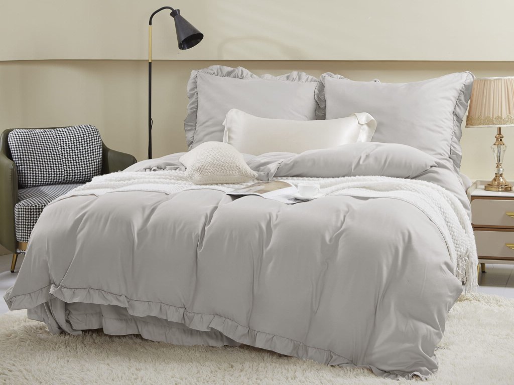 Premeňte svoju spálňu na oázu pohodlia a štýlu s posteľnými obliečkami Ruffy v elegantnej sivej farbe. Tieto obliečky s jemnými volánikmi sú perfektným doplnkom do vašej postele a sú vyrobené zo 100 % mikrovlákna, čo zaručuje vysokú pevnosť, odolnosť proti škvrnám a dlhotrvajúcu kvalitu. Okrem toho, mikrovlákno je príjemné na dotyk, ľahko sa čistí a skvele zadržiava teplo, čím zabezpečuje pohodlný spánok.