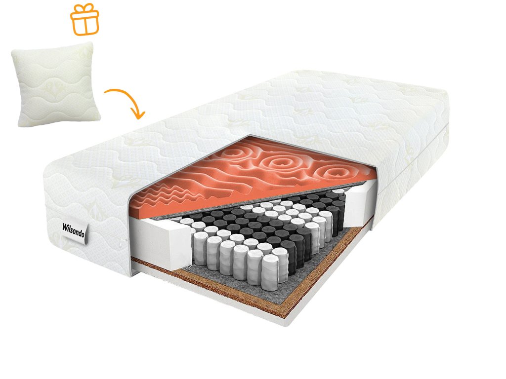 Materiálové zloženie: Filc, HARD taštičkové pružiny, Polyuretánová PUR pena s hustotou 25 kg/m3, Profilovaná pena T-25, Poťah, Kokosová vrstva