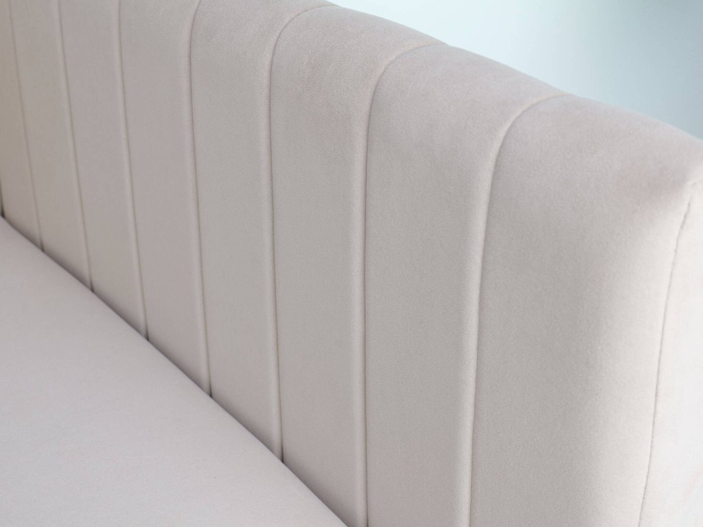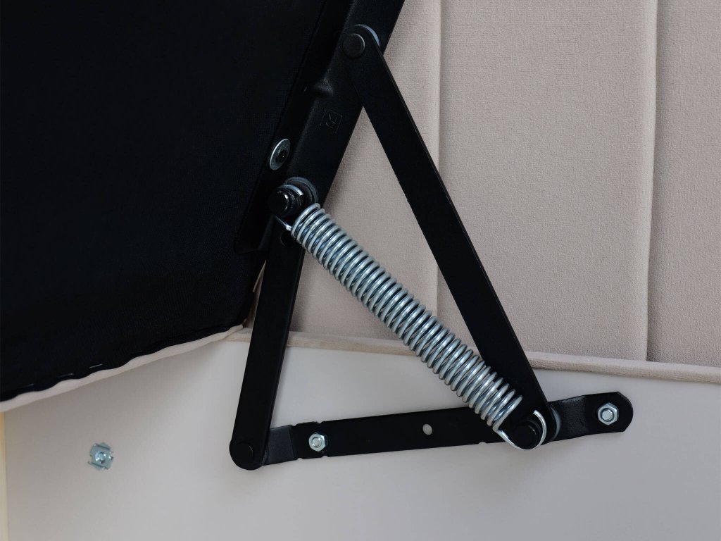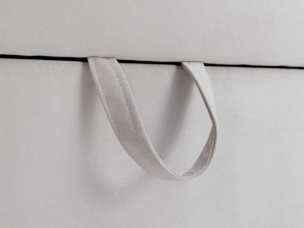Posteľ je obojstranná, to znamená že čelo je možné namontovať na pravú aj ľavú stranu. Zadná časť pohovky nie je čalúnená rovnakou tkaninou.