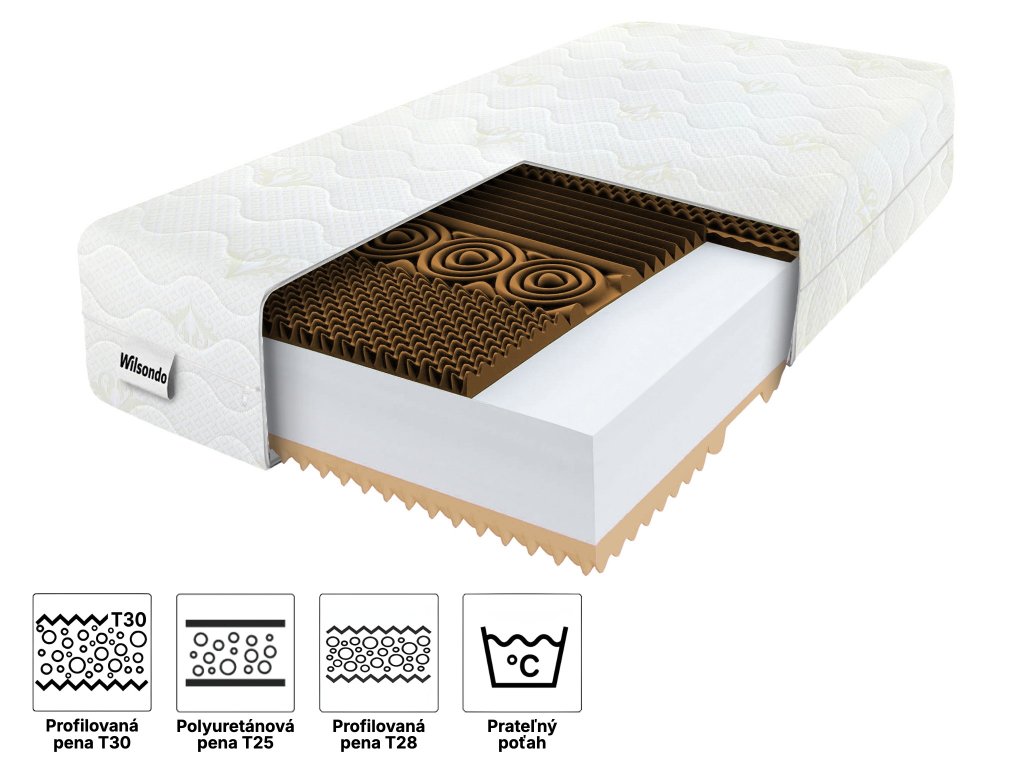 Materiálové zloženie: Profilovaná pena T30, Polyuretánová pena T25, Profilovaná pena T28, Poťah